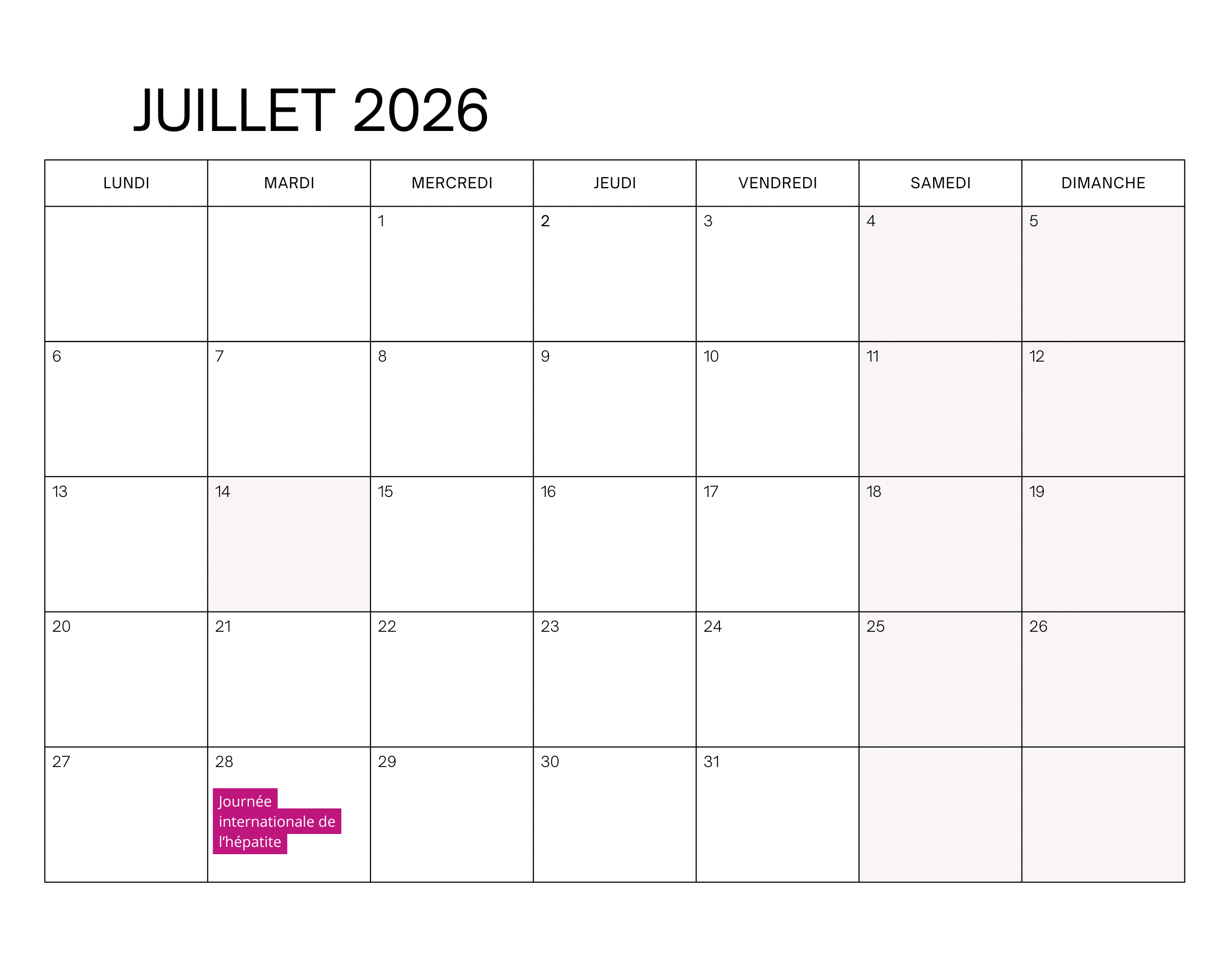 - 28 juillet 2026 : journée internationale de l’hépatite