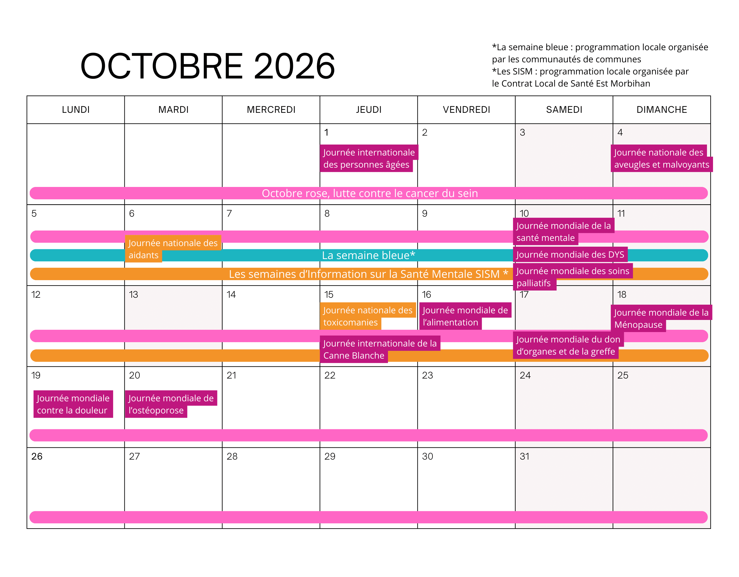 - Tout le mois : Octobre rose, lutte contre le cancer du sein