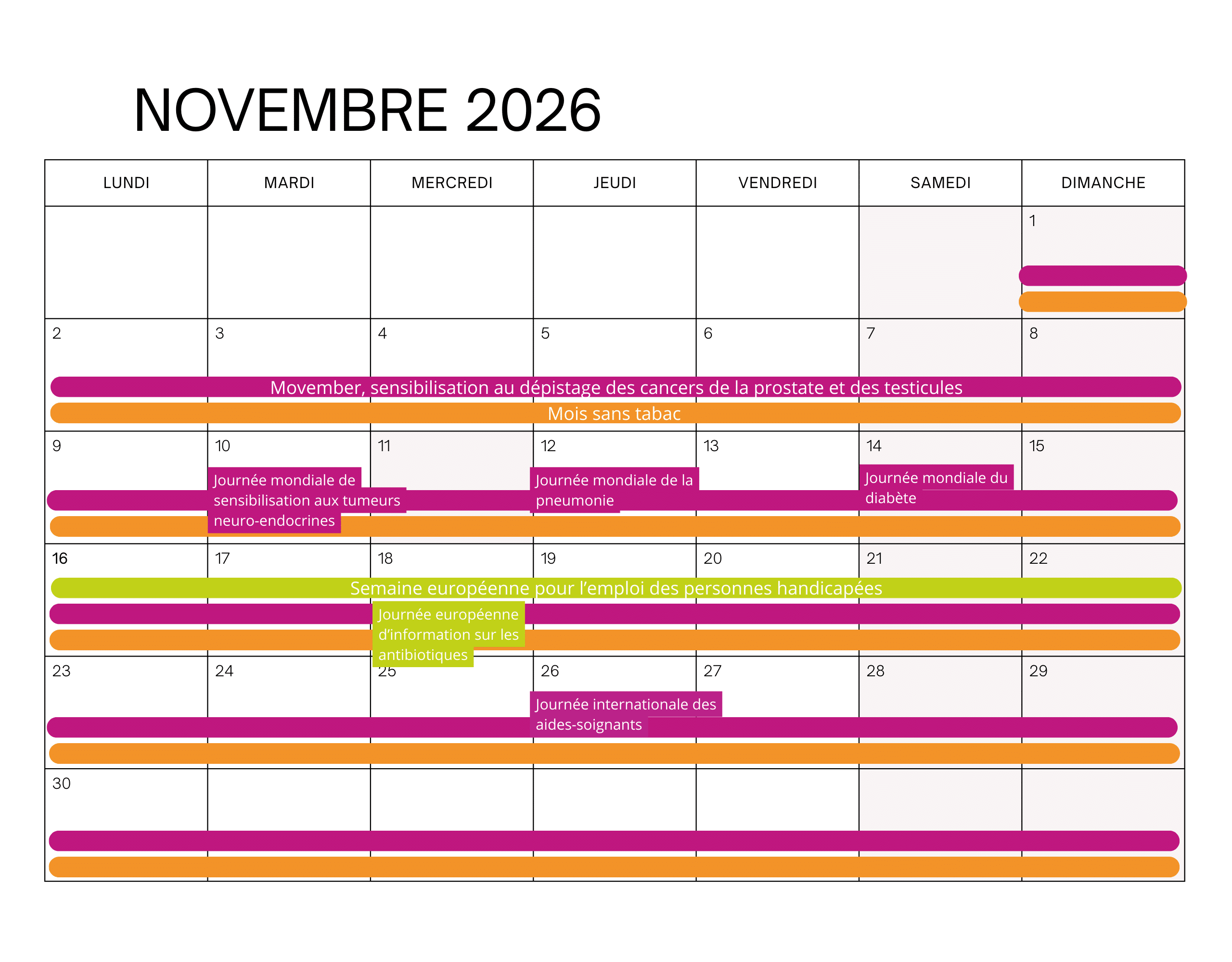- 14 novembre 2026 : journée mondiale du diabète