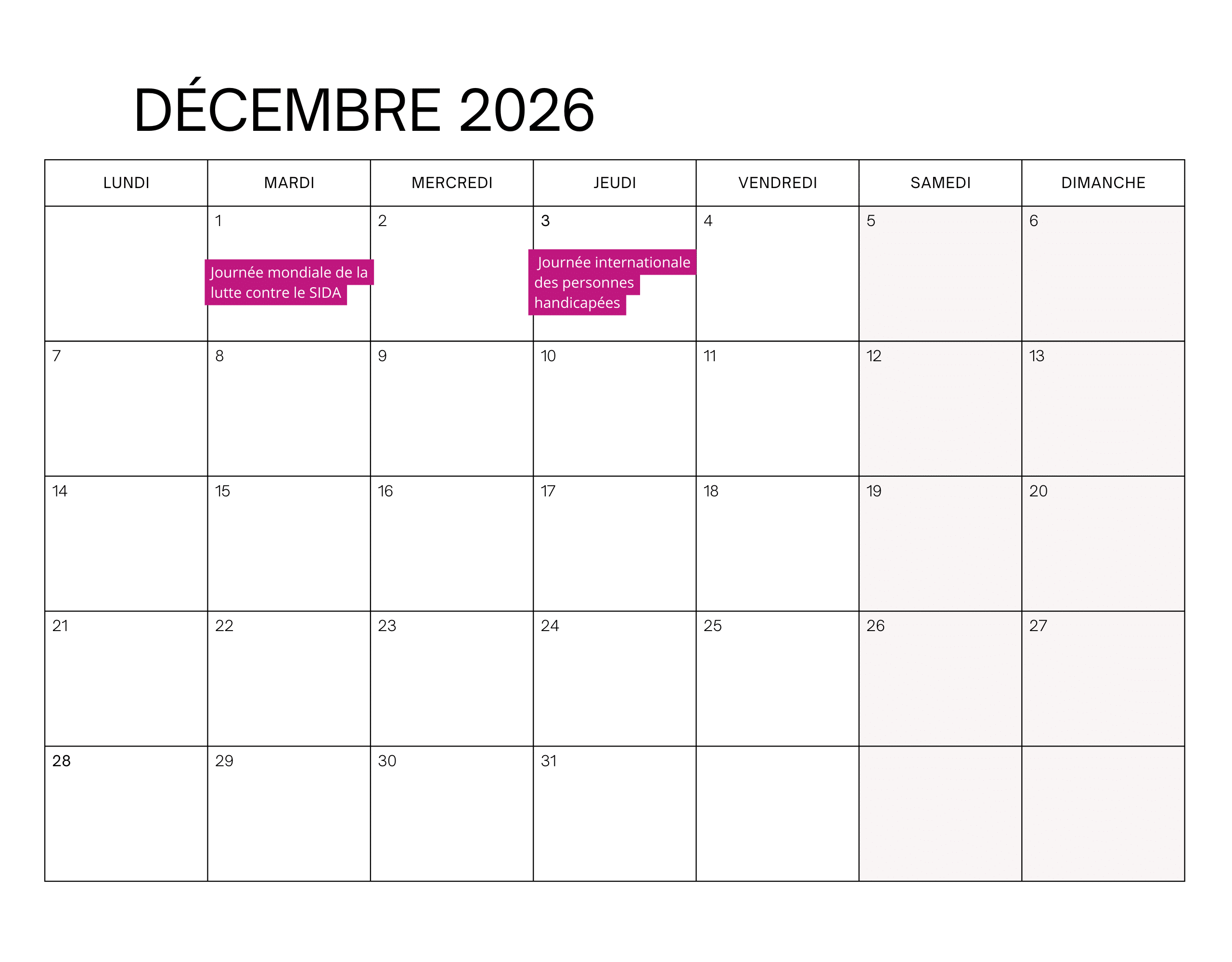 - 3 décembre 2026 : journée internationale des personnes handicapées
